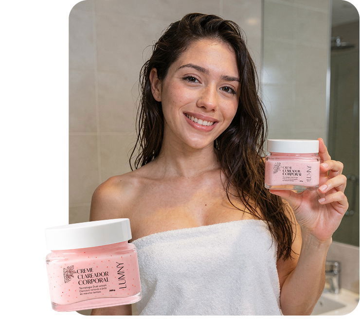 Lumny é um tratamento dermocosmético que age durante o banho, quando a pele está aberta, receptiva e pronta para realmente clarear — inclusive nas áreas mais sensíveis.
